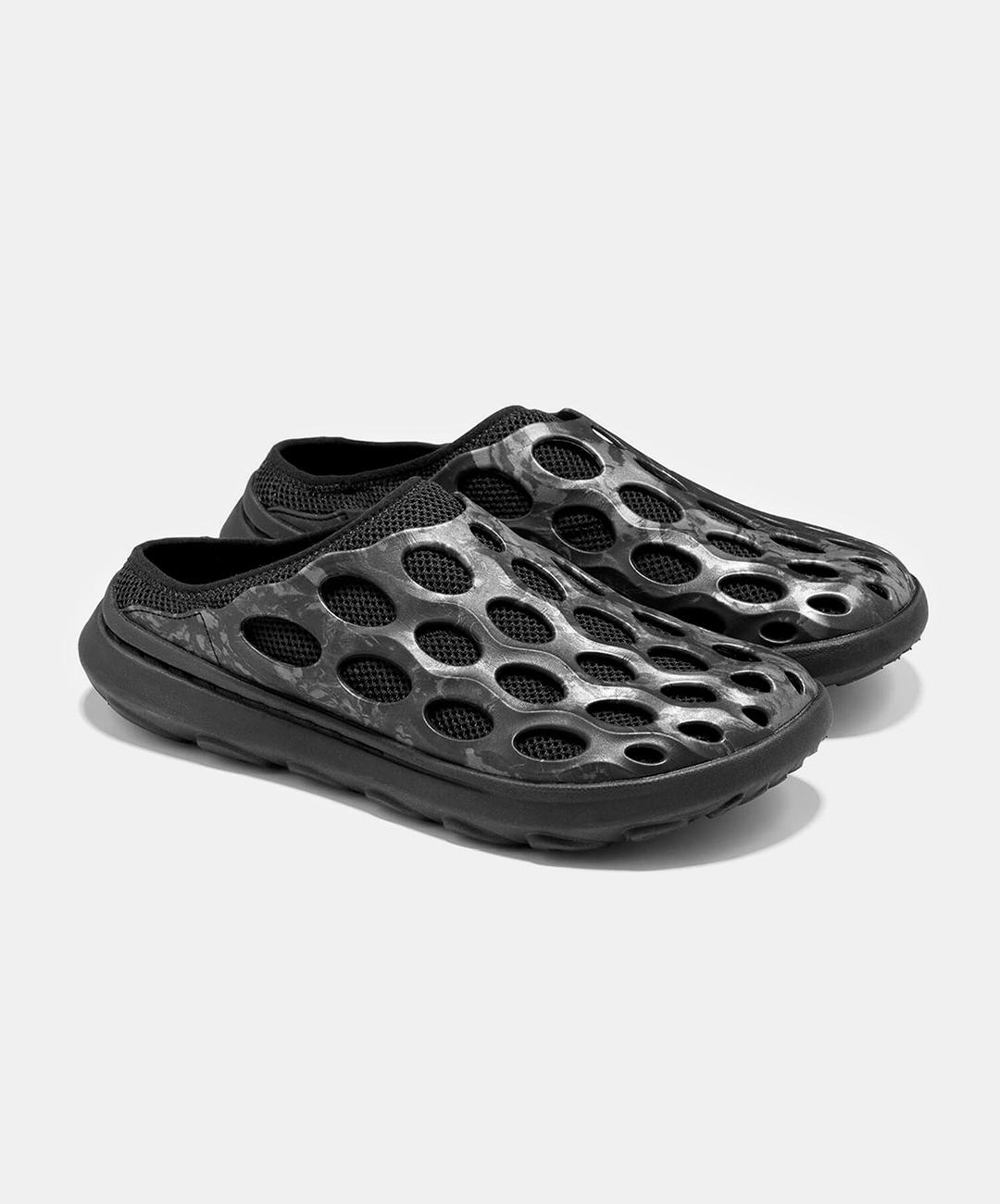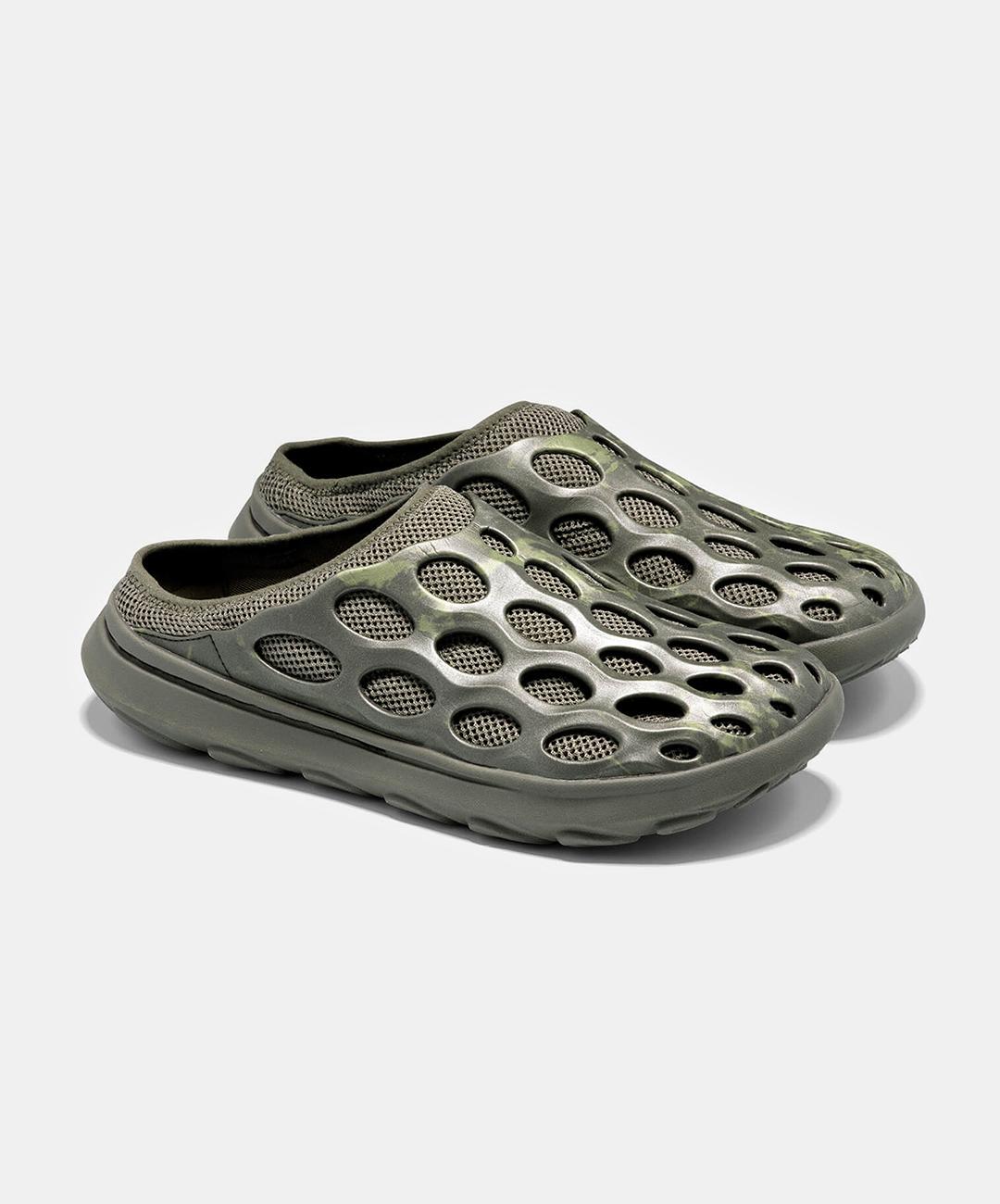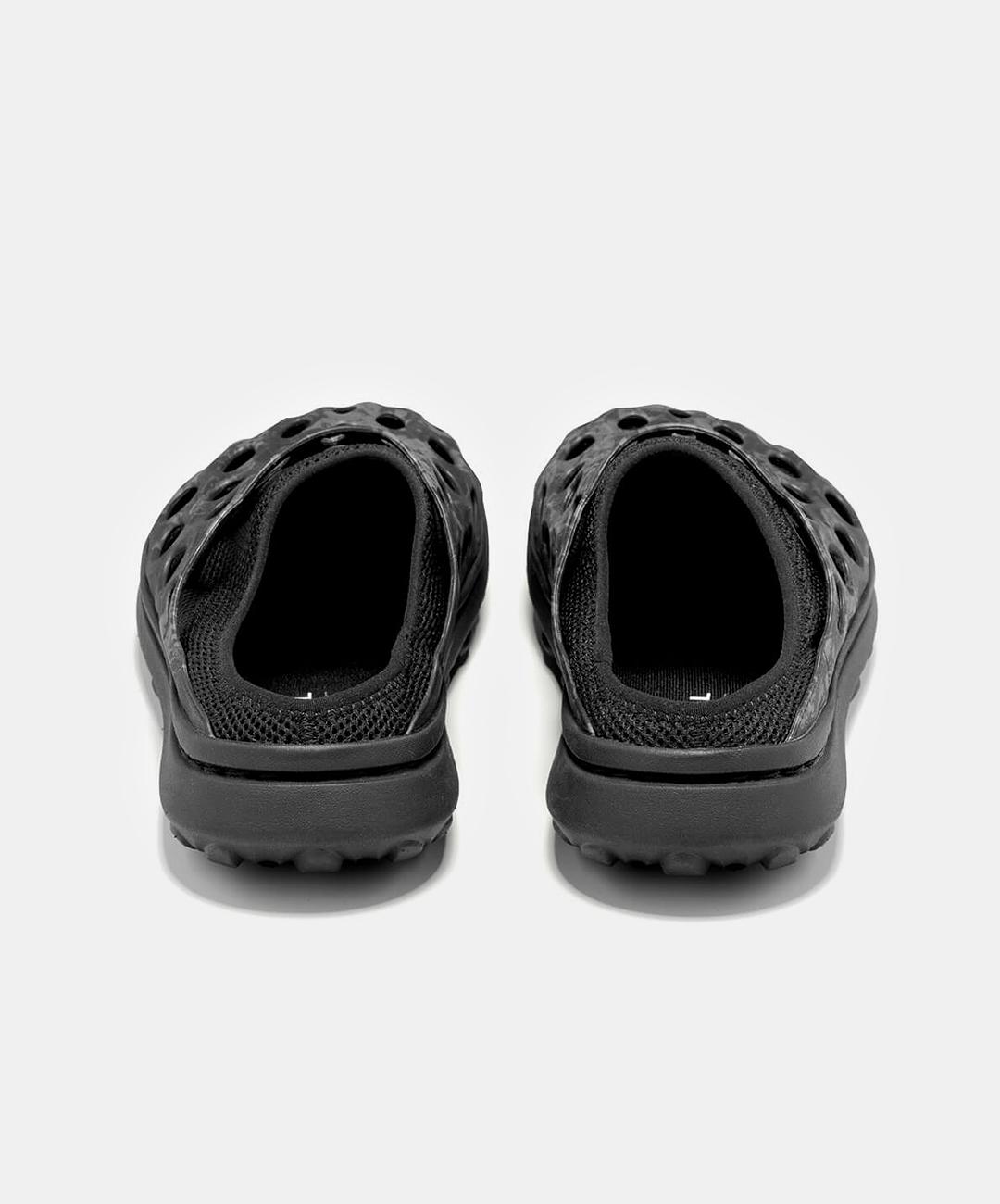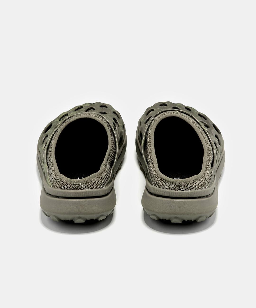 A mule evolution of the Hydro Runner. Created with a EVA upper for cleaning and ease, breathable mesh upper, 100% recycled breathable mesh lining, 100% recycled mesh wrapped insole, 'BLOOM' performance midsole foam is made of 10% algae biomass, FloatPro Foam™ midsole and an outsole grade EVA for weight saving grip.