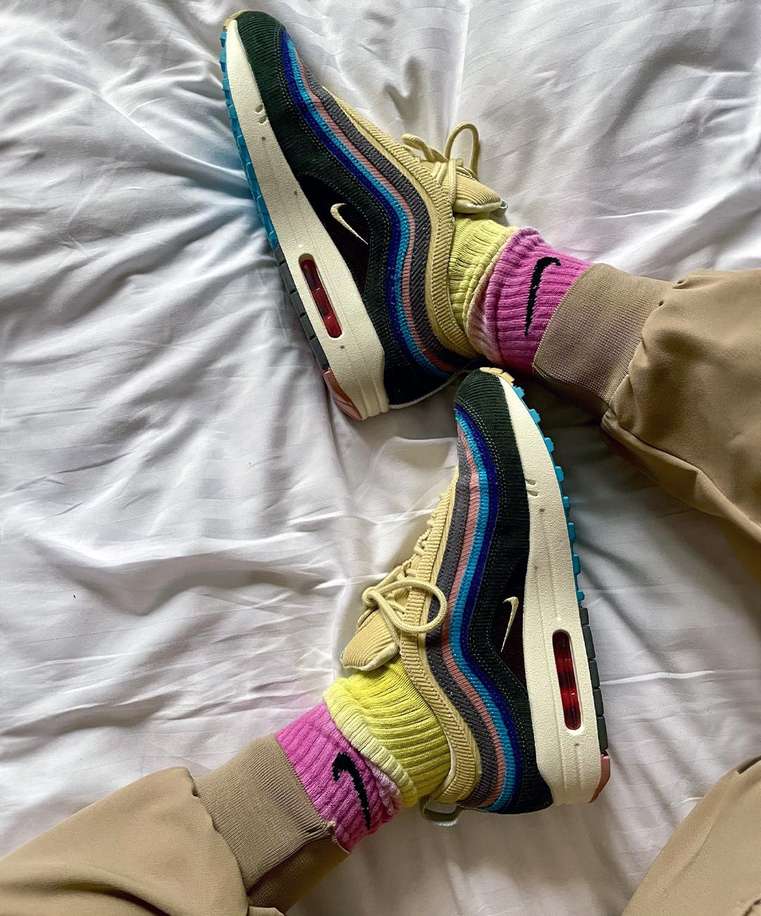 This was also my first “L” because I didn’t know how to buy them, so I bought the Air force 1 x Off- White at resell. After that I started to join raffles and my first “W” was the Nike Air Max 1/97 Sean Wotherspoon.