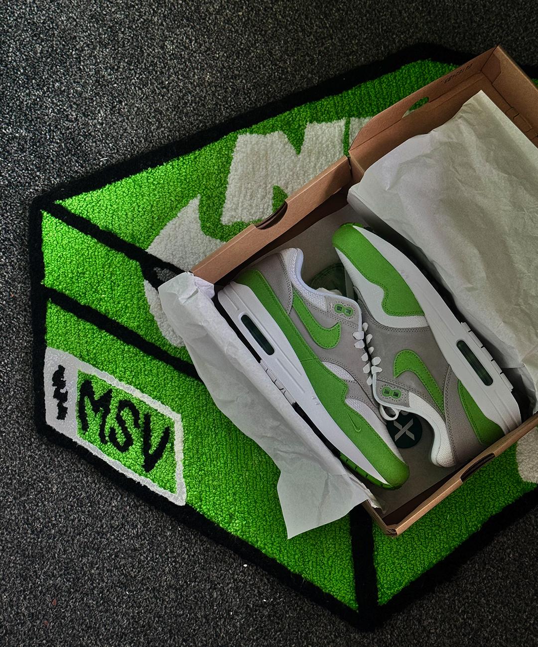 My green Stussy CPFM denim jacket. I shall be taking her to the grave with me. Oh, and my Jordan 1 High Patent Breds.