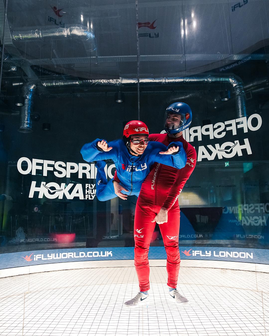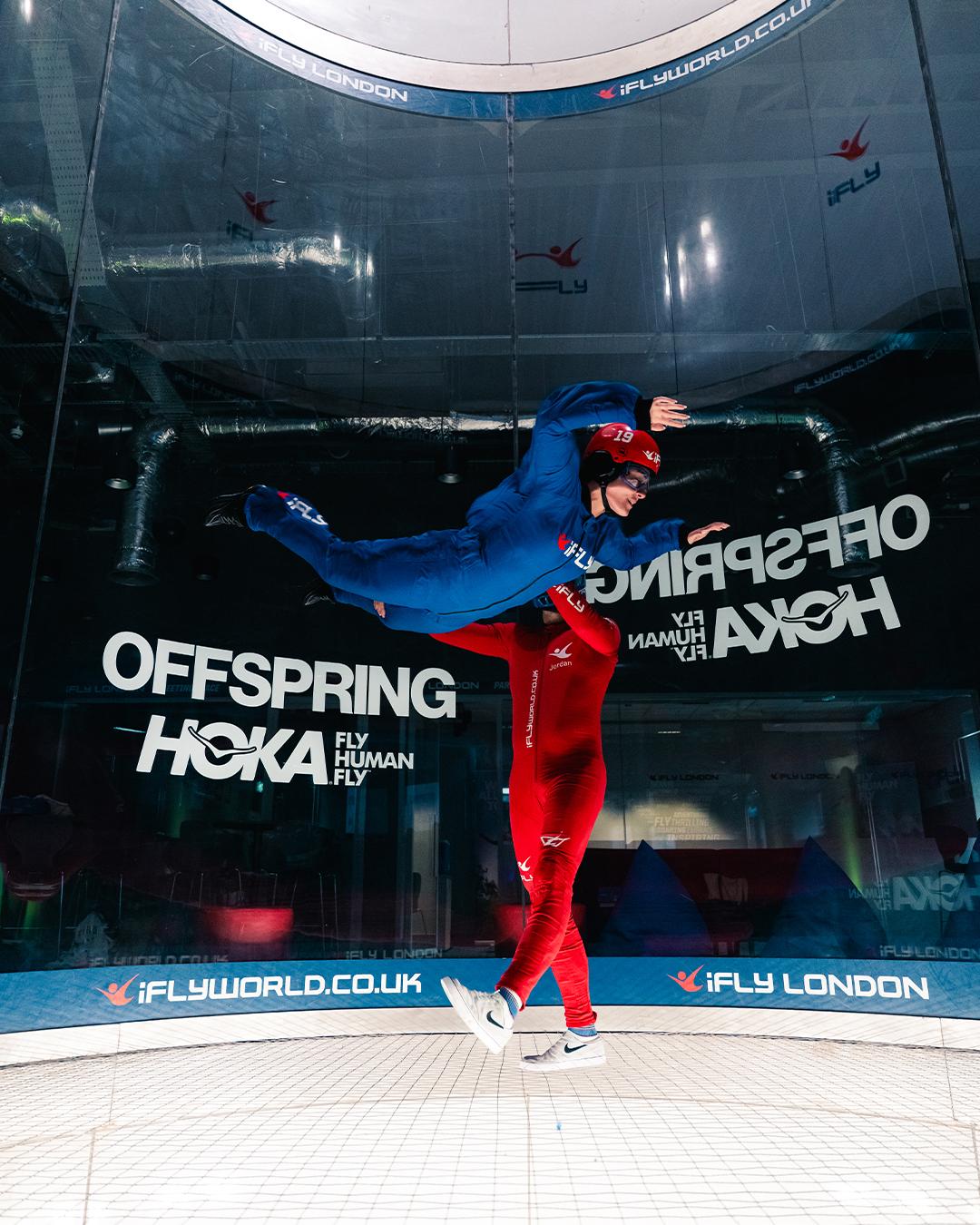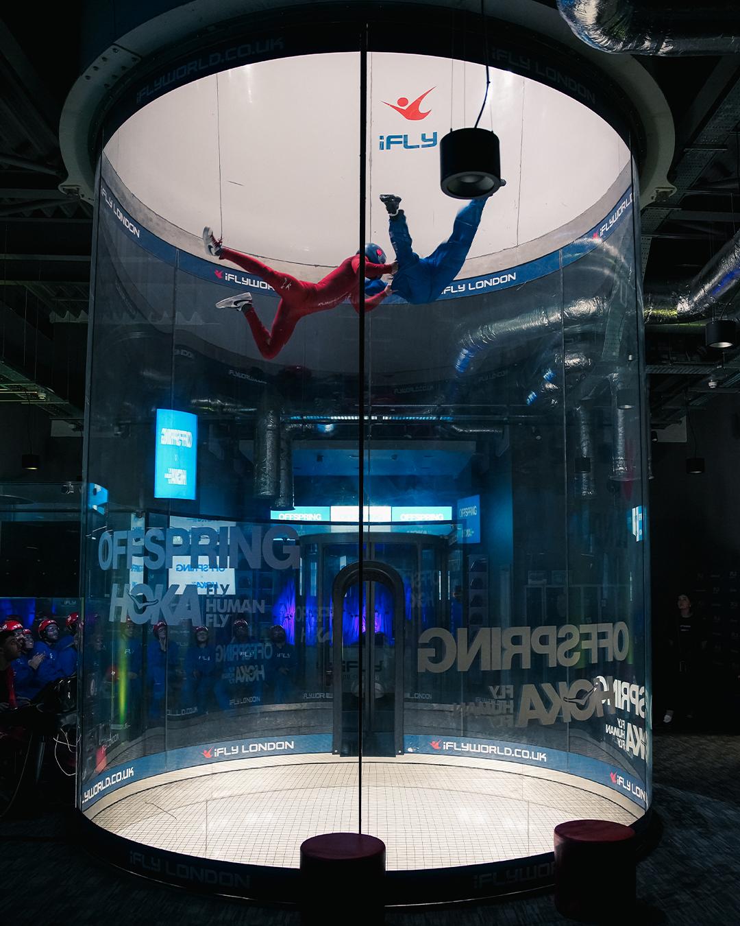 We took HOKA’s slogan of “ Fly human, Fly” literally, although not throwing them out of a plane, we did the next best thing and took a hand full of them over to ifly at the O2 for a sky diving experience.