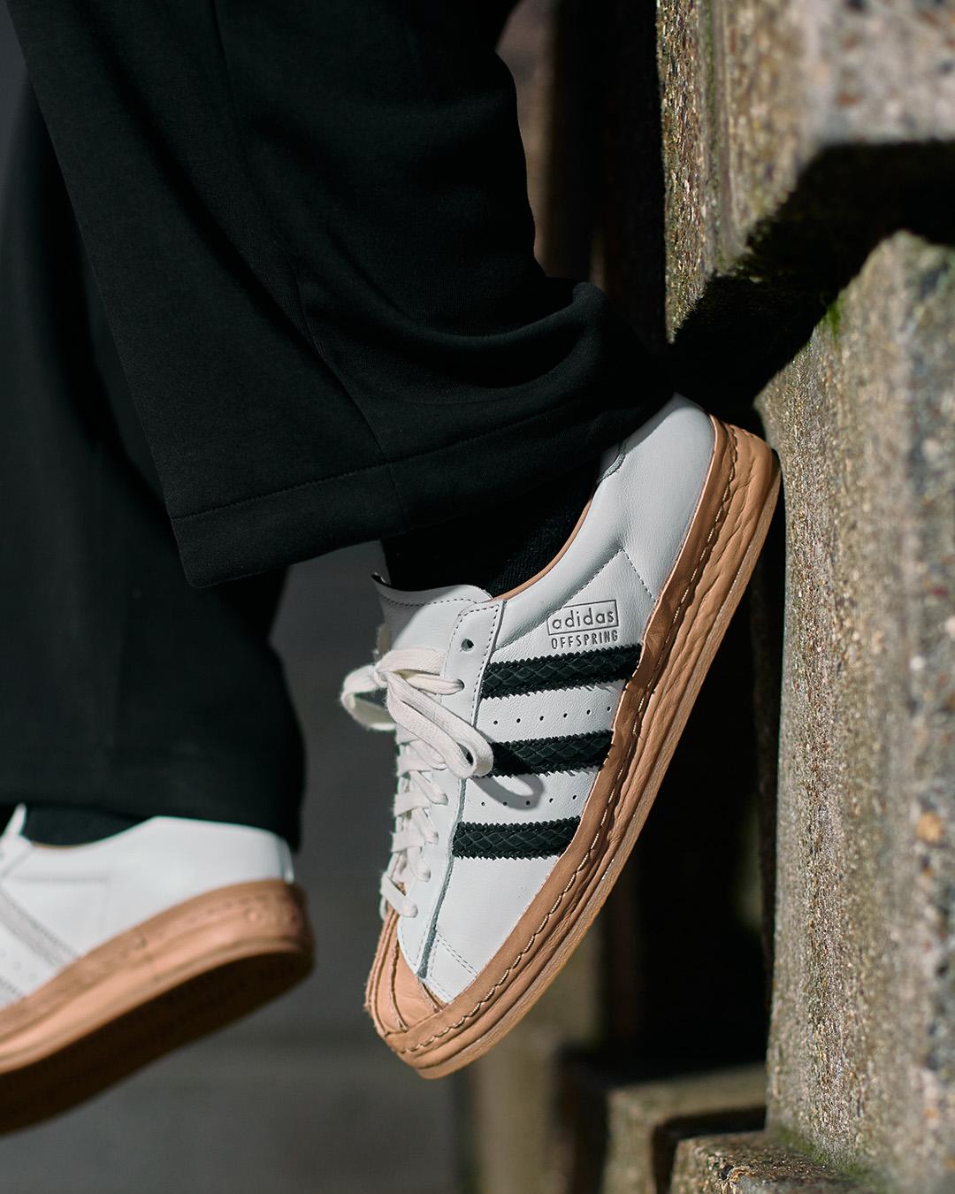 In honour of the OG, we retained the signature black-and-white stripes, but introduced subtle sophistication through skived leather detailing, waxed laces, and Offspring signature call-outs discreetly placed on the leather sole and body.