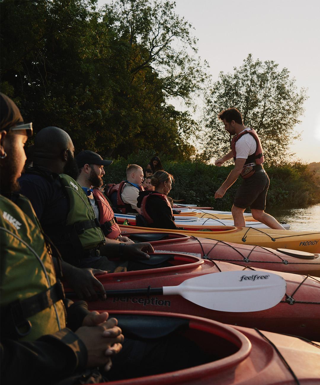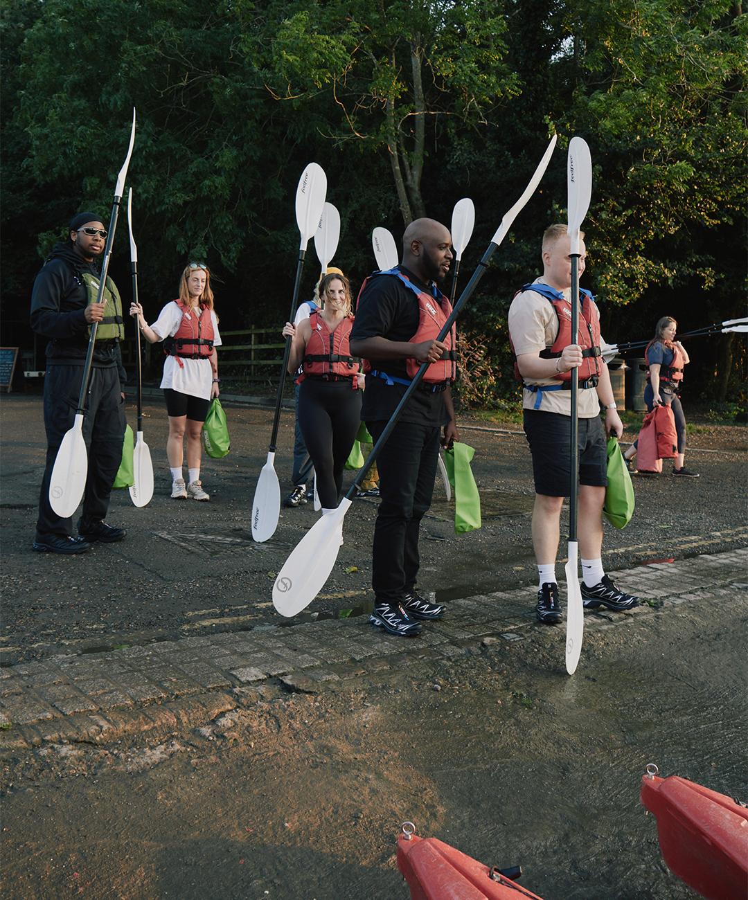 With the assistance of our friends at Salomon and GORE-TEX we booted everyone up, strapped them into a life jacket and slid them into a kayak. For many it was a first-time affair and for some, claiming they were seasoned veterans (not naming anyone that capsized) we set off at golden hour for a scenic row across the narrow Thames and onto a wholesome pub dinner at the White Swan.