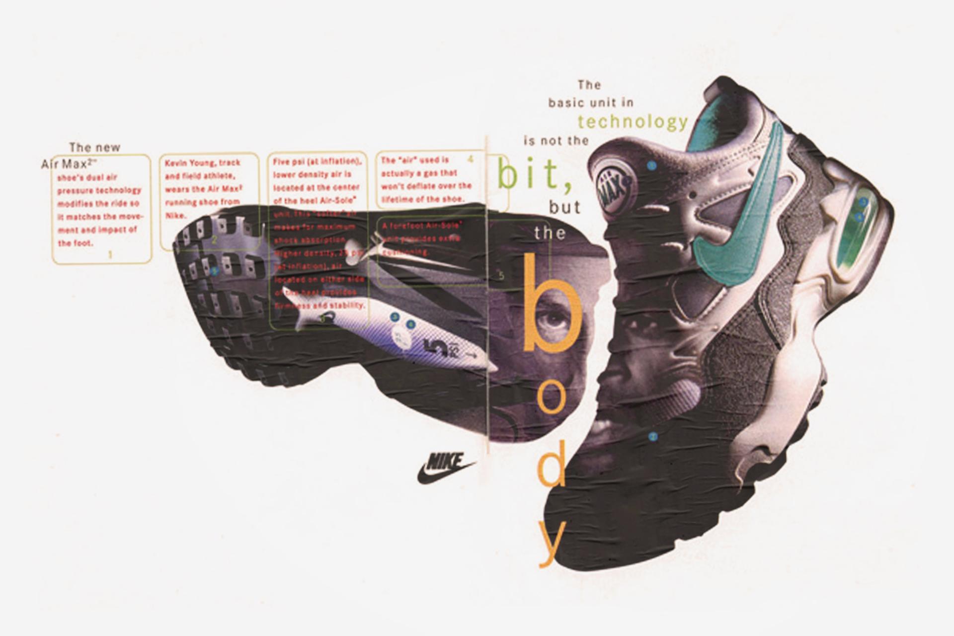 One of Tinker Hatfield’s final designs, the silhouette of the Air Max 2 had a clear nod to the AM93. The shoe however had a far more aggressive aesthetic – a look that extended all the way from the upper, down to the speckled mudguard, outsole, and different-coloured Air units in the heel. The shoe introduced multiple Air chambers with different pressures for strategic cushioning and support, which were later found in the AM95.
