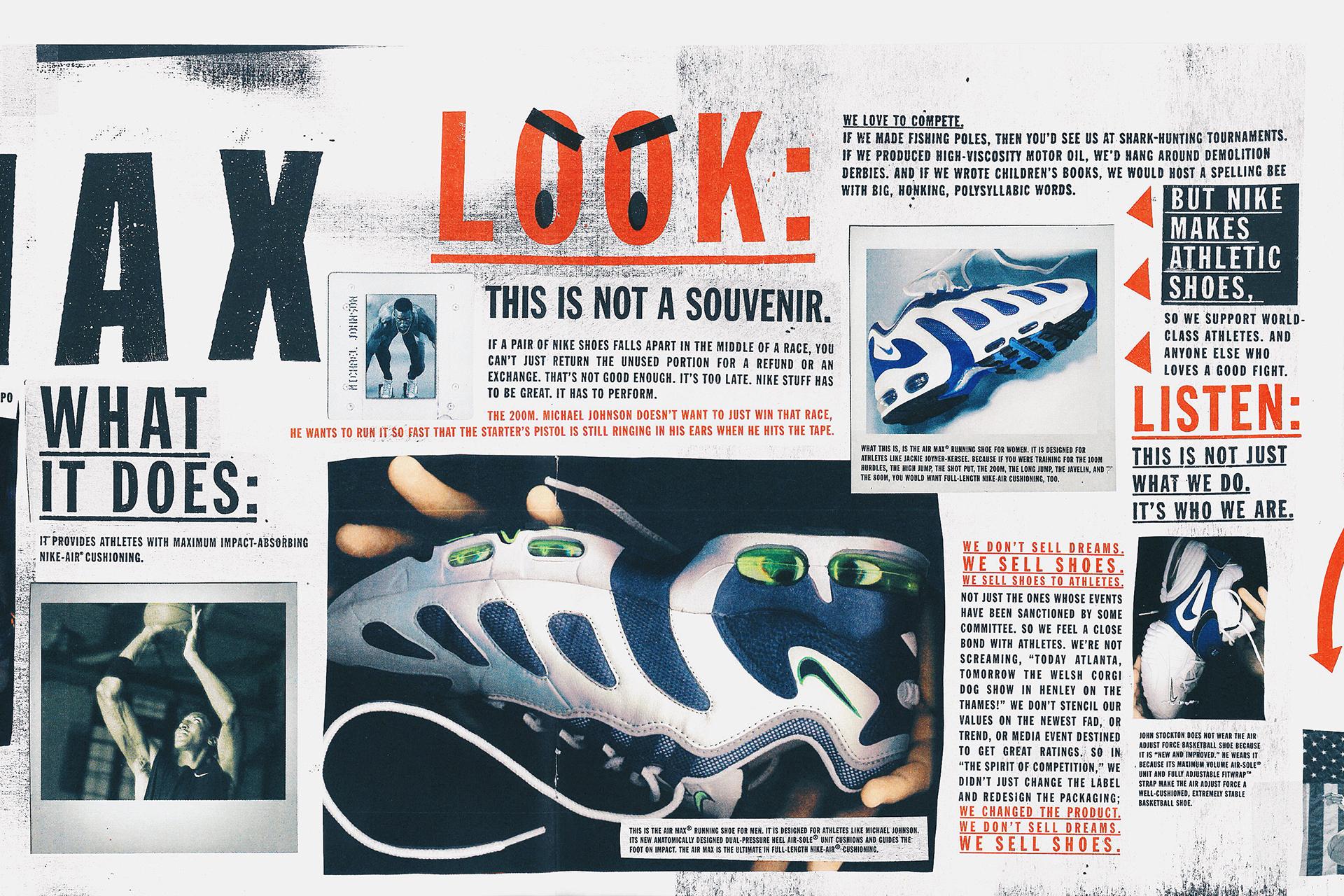 “I remember sitting on a plane with Mark Parker and we didn’t want anyone else to see the Air Max sample because we were fresh out of the factory. I’d look at it and he’d look at it, and we’d look at each other and go, ‘Man this is wild!’ I remember us both pretty much thinking the same thing: ‘This is crazy, but this is going to work, and people are going to go nuts! Sure enough it just exploded.”