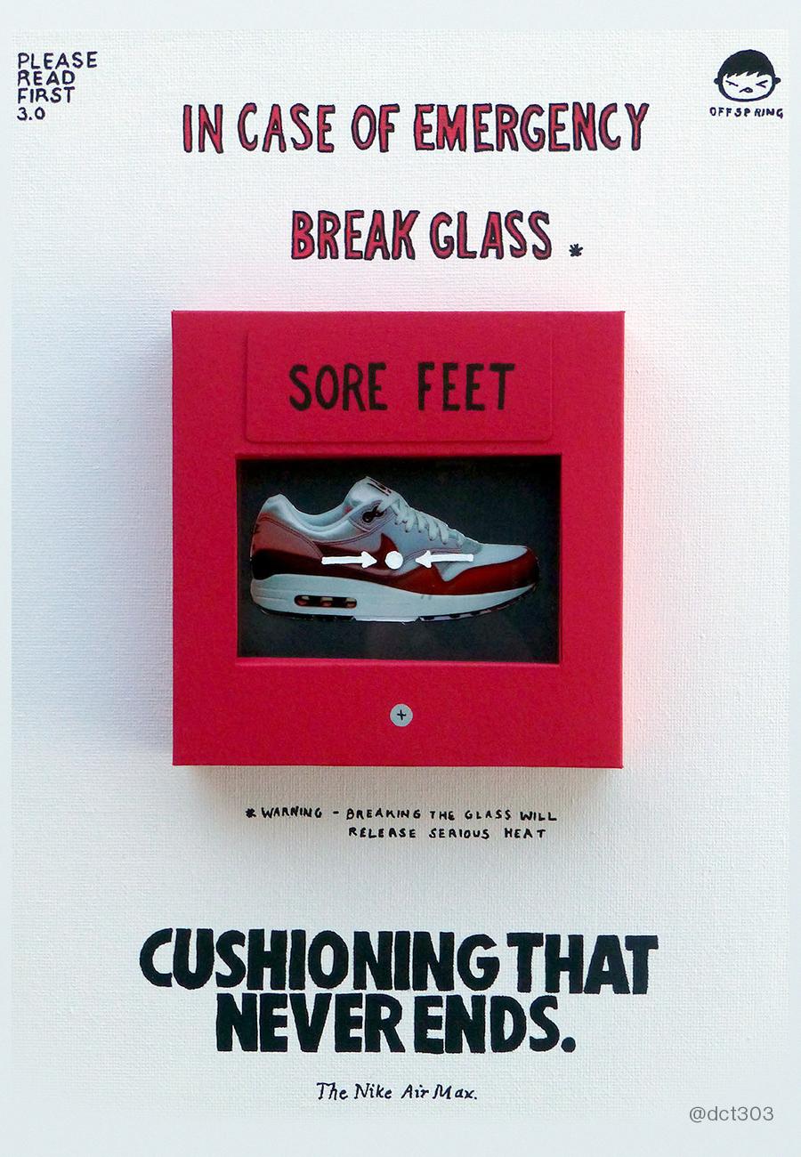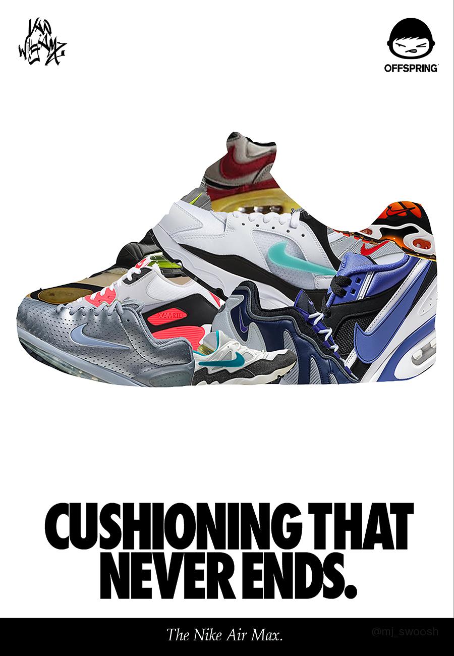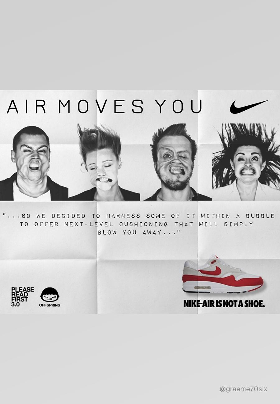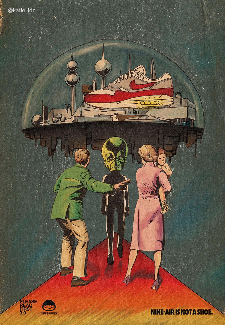 There is something about the Nike Air Max that still drives us to imagine and create, something which really resonates with the Offspring Community. The AM silhouette has always been 10 steps ahead, from the design, technology, and of course the iconic adverts. We asked the Community to reimagine Air Max adverts by creating posters for the future. Celebrating all things Air Max 1, these posters are a breath of fresh Air.